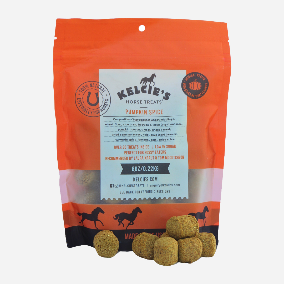 Kelcies Pumpkin Spice Horse Treats are low in sugar, starch, and carbohydrates. Each batch is crafted using locally-sourced, natural ingredients.