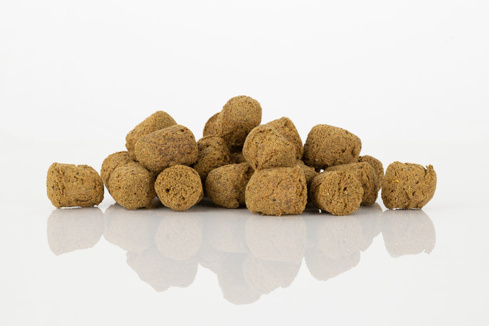 Our Pumpkin Spice Horse Treats are manufactured using a unique extrusion process which creates a specific density and shape designed for optimal digestion and nutrition absorption. This extrusion process also decreases moisture and prevents mold growth. This enables our bags to have a longer shelf life, although your horse will likely eat the entire bag long before.